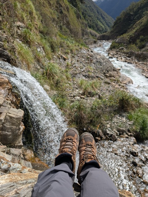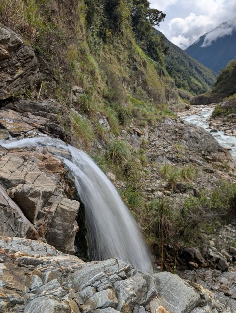 It's spring here now, which means the rainy season is about to begin. We've already been getting light showers daily. But we've been successfully avoiding them. And now it's pouring. And we're under the roof of a small hut for hikers on the Salkantay trail.