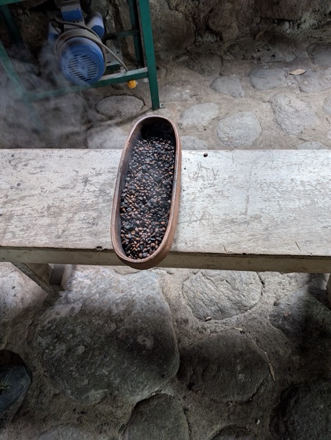Then, using a special mechanical device, we separated the coffee beans from the husks and roasted the beans in a wood-fired oven. Finally, we ground the freshly roasted beans using a hand grinder with an attachment.