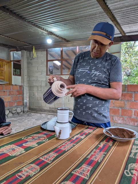 We stop to make coffee. We have a stove, we bought gas in Cusco, and we've got a coffee maker to go…