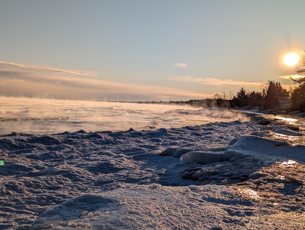 Мы опять поехали в снега — в этот раз в нижнем Мичигане, около города Манисти. Беговые лыжи, снегоступы, озеро Мичиган. Я при этом ещё и работал.