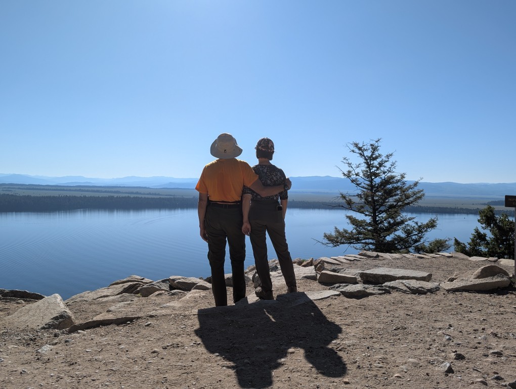 Гранд Тетон был первым парком из нашего “обязательного” списка, и он действительно стоил того. С первого момента мы не уставали восхищаться открывающимися видами (мне при этом все время вспоминался анекдот “Ой, Вань, красота-то какая!”). В одном месте не удержались и остановились, чтобы сделать несколько фоток и пройтись по тропе вдоль озера…